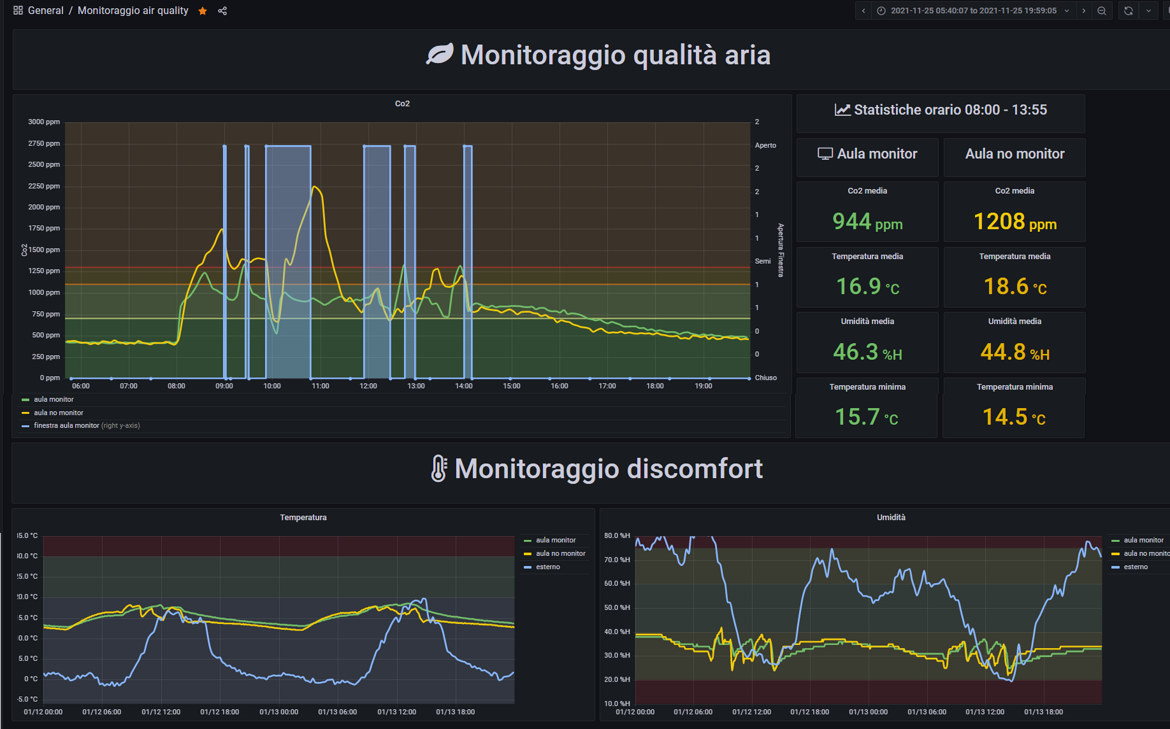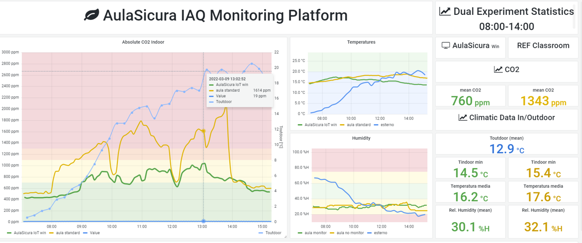 The complex statistical mathematical model (which elaborates also the number of occupants in real time) alert when it is time to open the windows or mechanically ventilate the classroom. Complex algorithms ensure a correct estimate of the ventilation rates of that specific classroom during that specific day, from the continuos CO2 measurement.